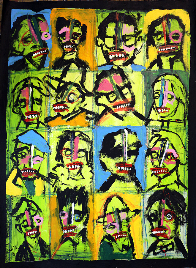 "Lost in a Crowd" acrylic on matboard approx 11" x 11" *SOLD email sesow@sesow.com to reserve/ask about purchasing. please include url and description. |
