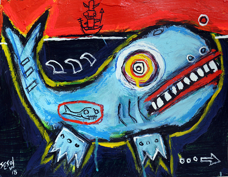 "The Whale" acrylic/oil on archival archival paper 11" x 14" *SOLD email sesow@sesow.com to reserve/ask about purchasing. please include url and description. |