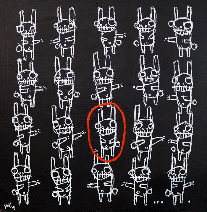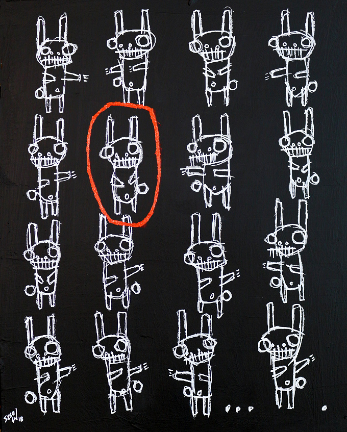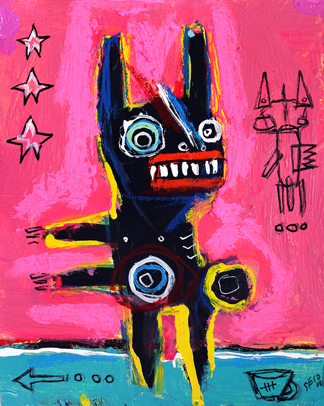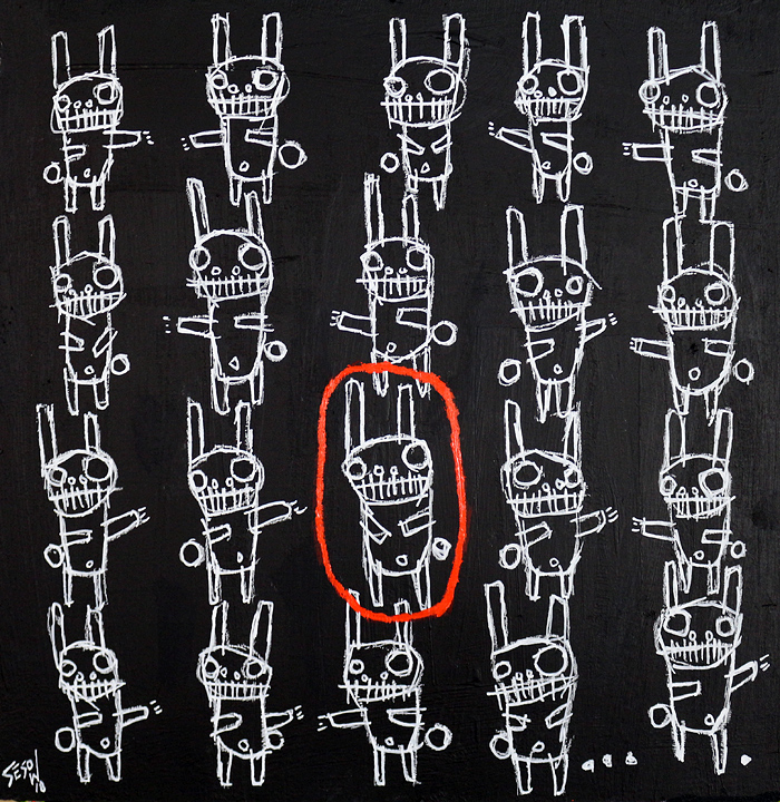 "Bunny Run Right" acrylic/oil on archival archival paper 8" x 10" *SOLD email sesow@sesow.com to reserve/ask about purchasing. please include url and description. |