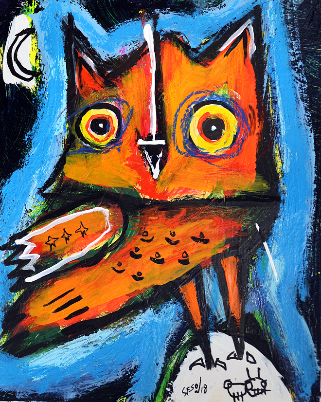 "Orange Owl" acrylic/oil on archival archival paper 8" x 10" *SOLD email sesow@sesow.com to reserve/ask about purchasing. please include url and description. |