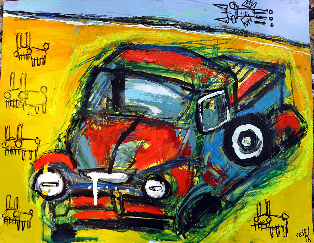 "Bunnies and a broken-down truck" acrylic/oil on archival paper 11" x 14" *SOLD email sesow@sesow.com to reserve/ask about purchasing. please include url and description. |