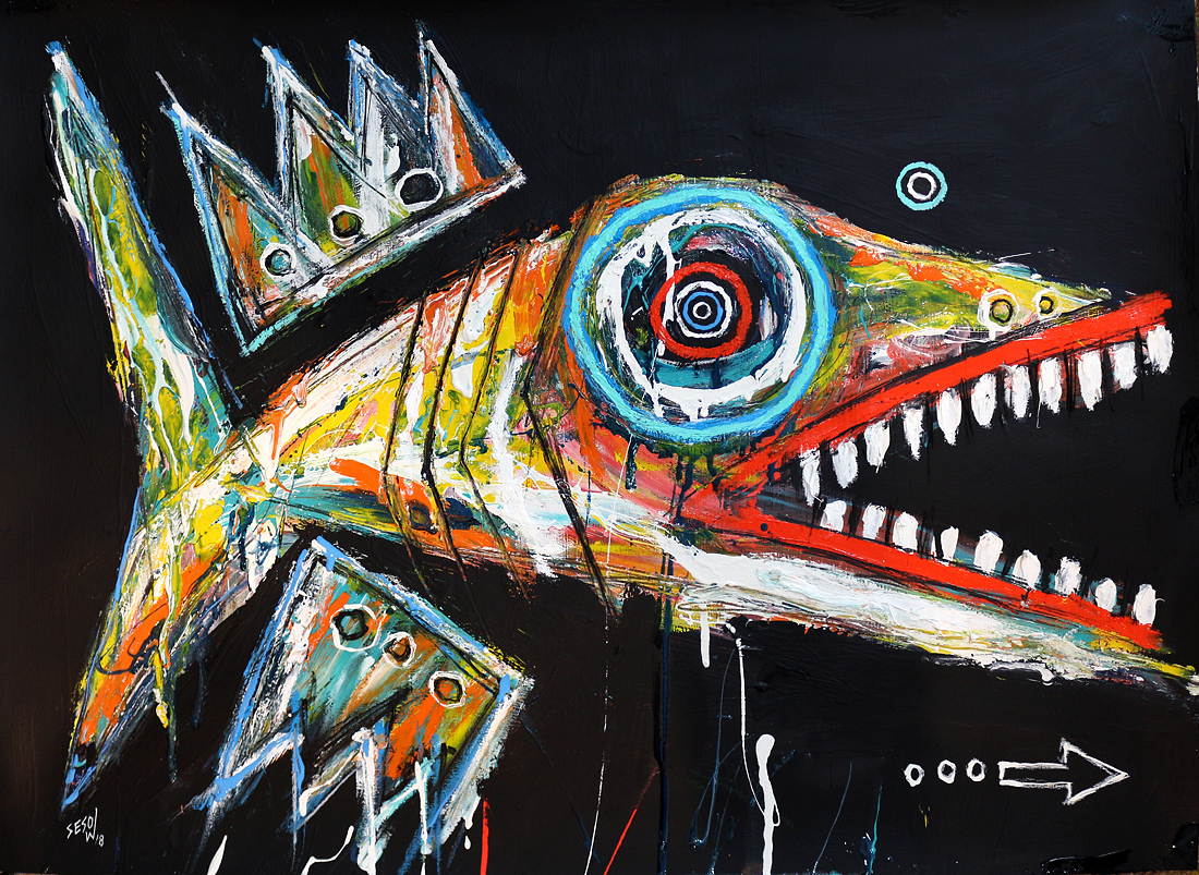 "Upstream" acrylic/oil on archival watercolor paper 22.5" x 31" *SOLD email sesow@sesow.com to reserve/ask about purchasing. please include url and description. |