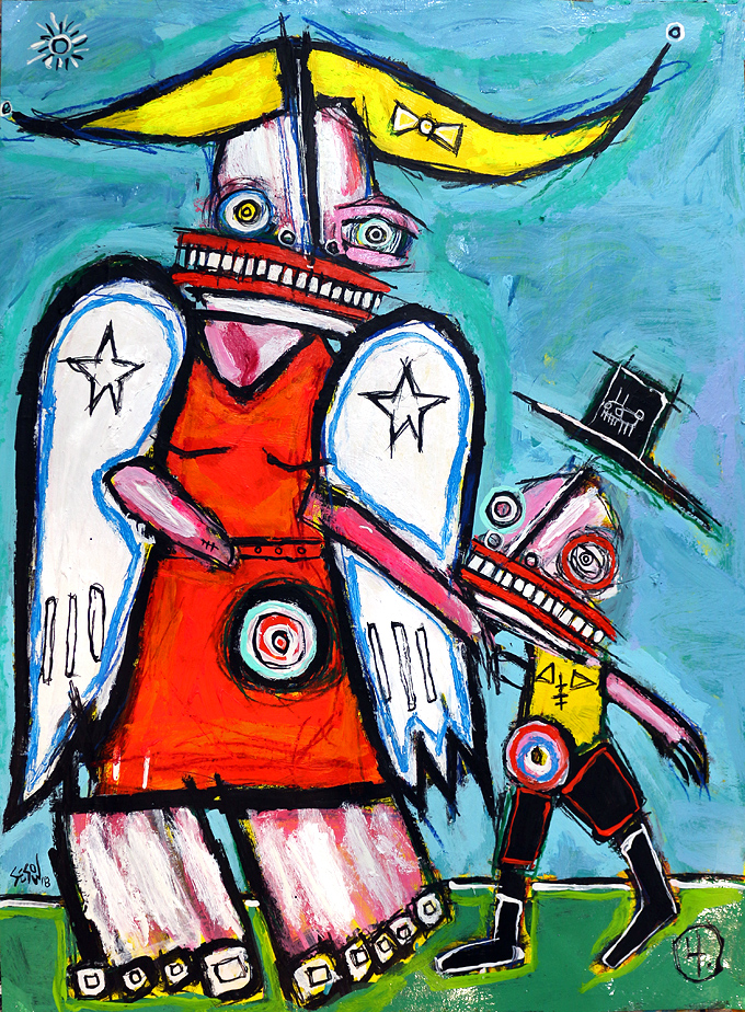 "Guardian Angel, the Choice to Stay (sept. 2018)" acrylic/oil on archival watercolor paper 31" x 22.5" *SOLD email sesow@sesow.com to reserve/ask about purchasing. please include url and description. |