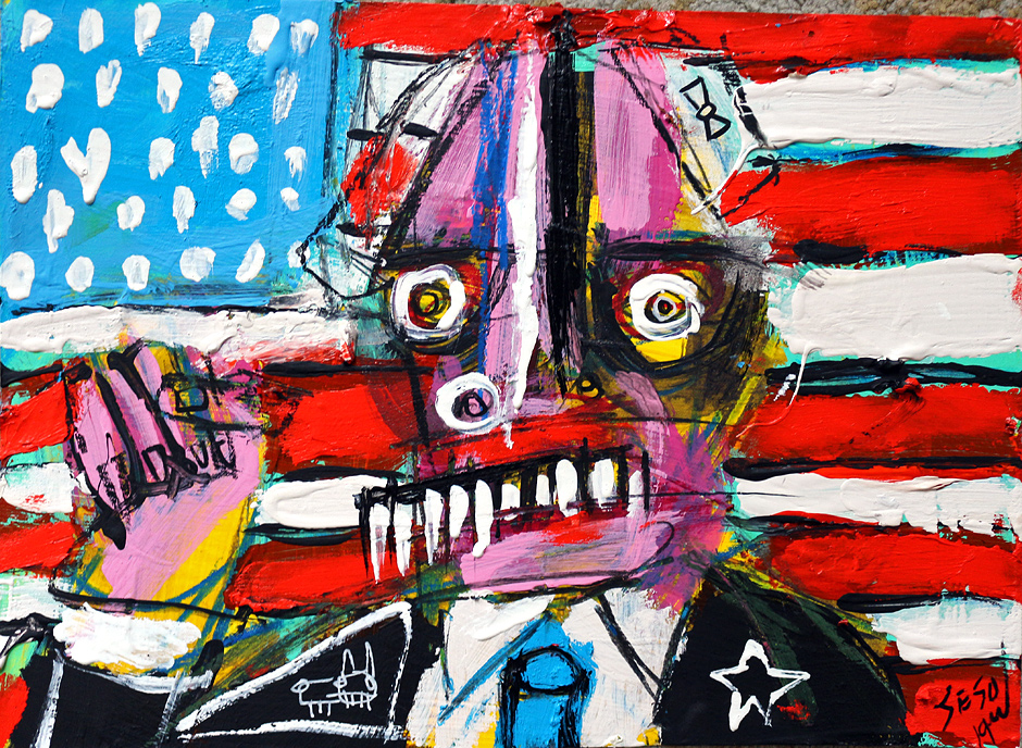 "America" acrylic/mix on matboard 9" x 12" *SOLD email sesow@sesow.com to reserve/ask about purchasing. please include url and description. |