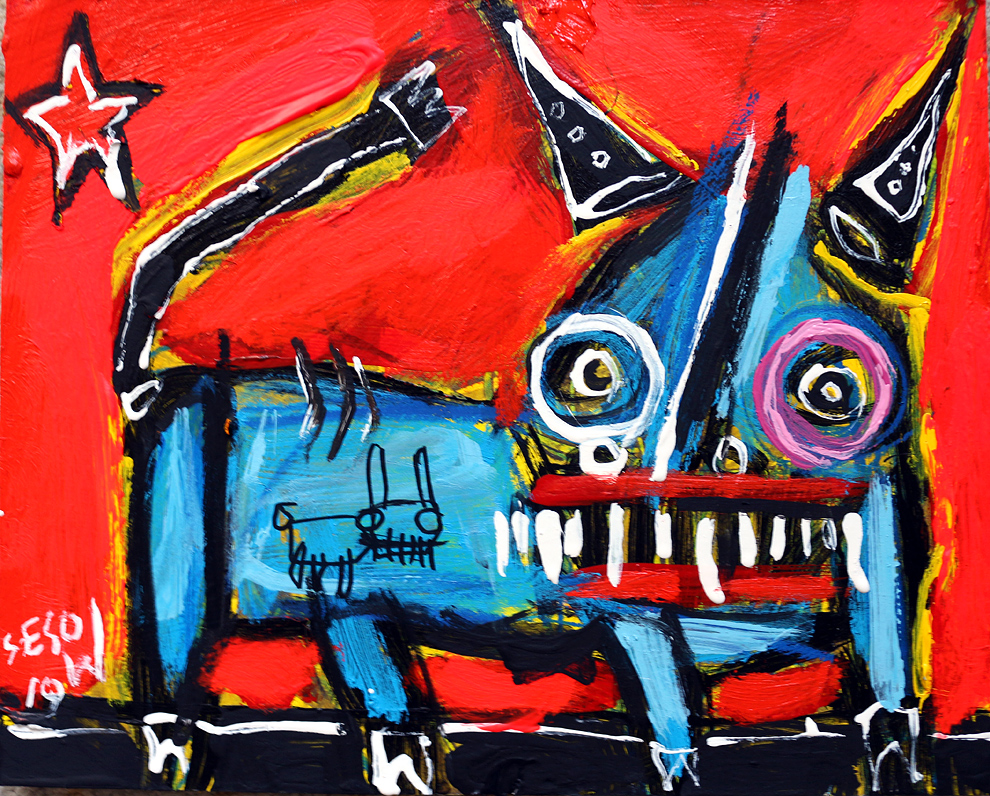 "Bull star bunny heart" acrylic/mix on matboard approx. 9" x 11" *SOLD email sesow@sesow.com to reserve/ask about purchasing. please include url and description. |