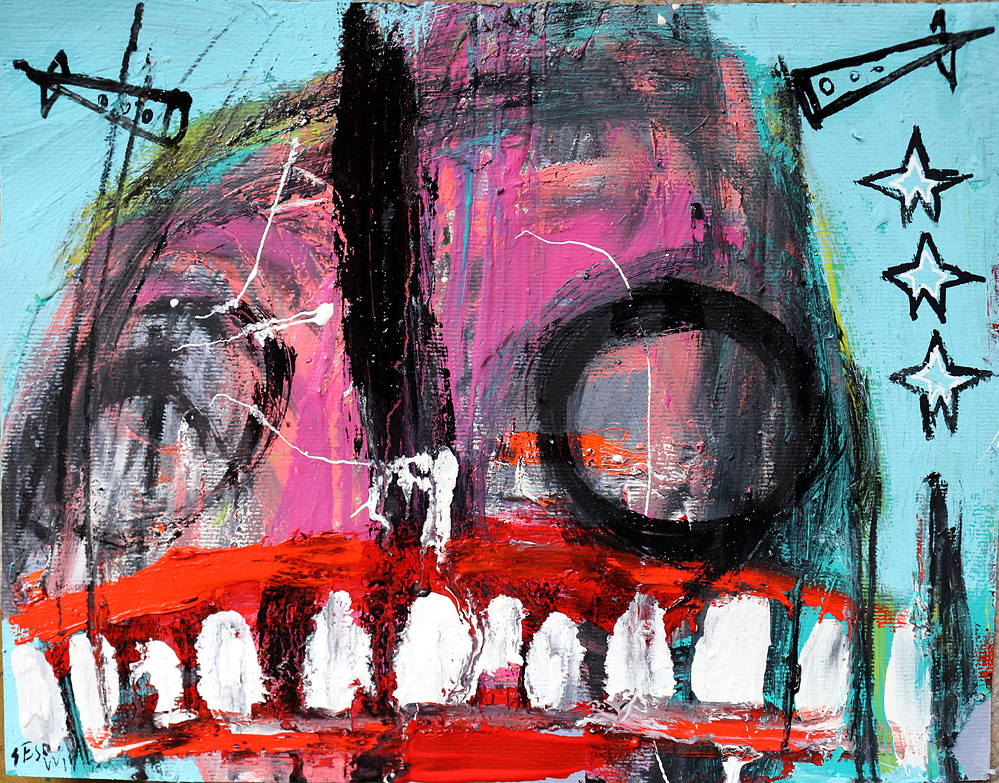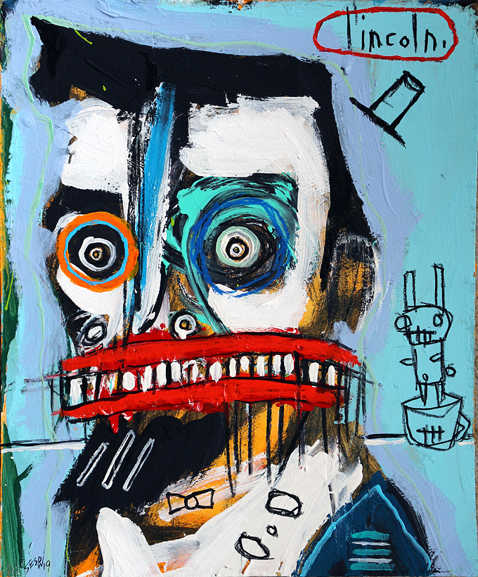 "Looks Like Lincoln (with three stars)" acrylic/mix on matboard approx. 16.25" x 11.75" *SOLD email sesow@sesow.com to reserve/ask about purchasing. please include url and description. |