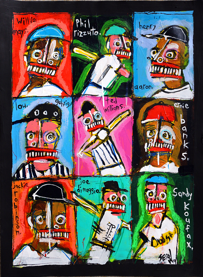 "Baseball Greats" acrylic/mix on thick archival watercolor paper 22.5" x 31" *SOLD email sesow@sesow.com to reserve/ask about purchasing. please include url and description. |