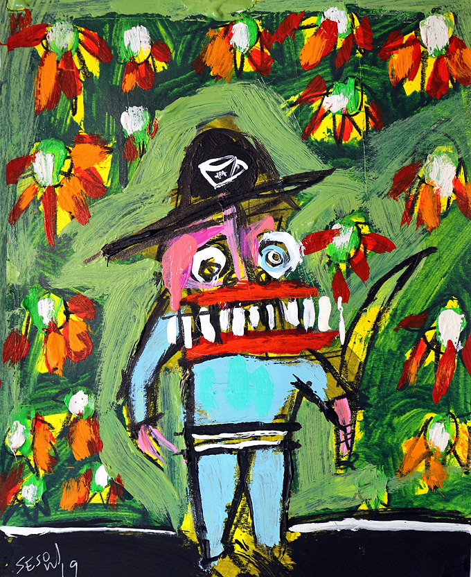 "The Gardener" acrylic/mix on archival paper 8" x 10" *SOLD email sesow@sesow.com to reserve/ask about purchasing. please include url and description. |