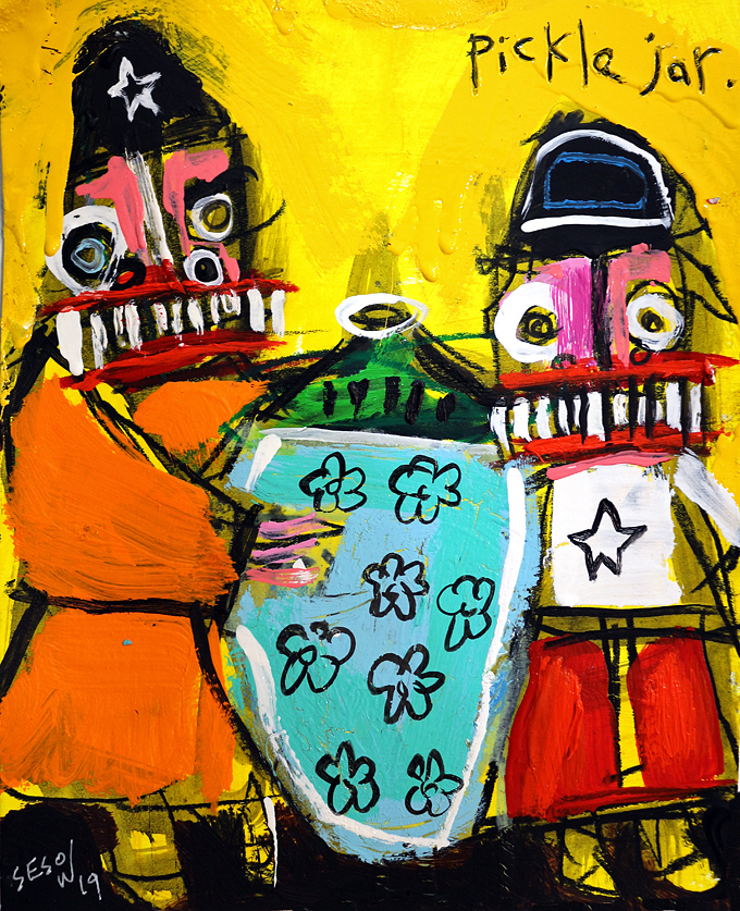 "Pickle Jar" acrylic/mix on archival paper 8" x 10" *SOLD email sesow@sesow.com to reserve/ask about purchasing. please include url and description. |