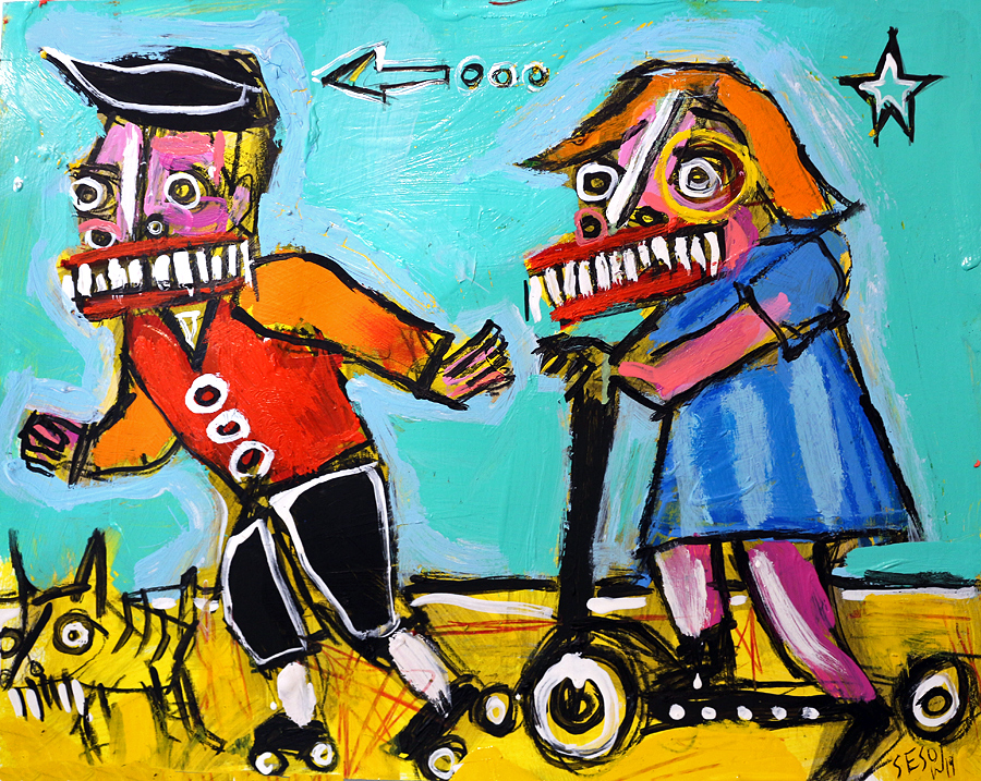 "Skate Park" acrylic/mix on archival paper 11" x 14" *SOLD email sesow@sesow.com to reserve/ask about purchasing. please include url and description. |