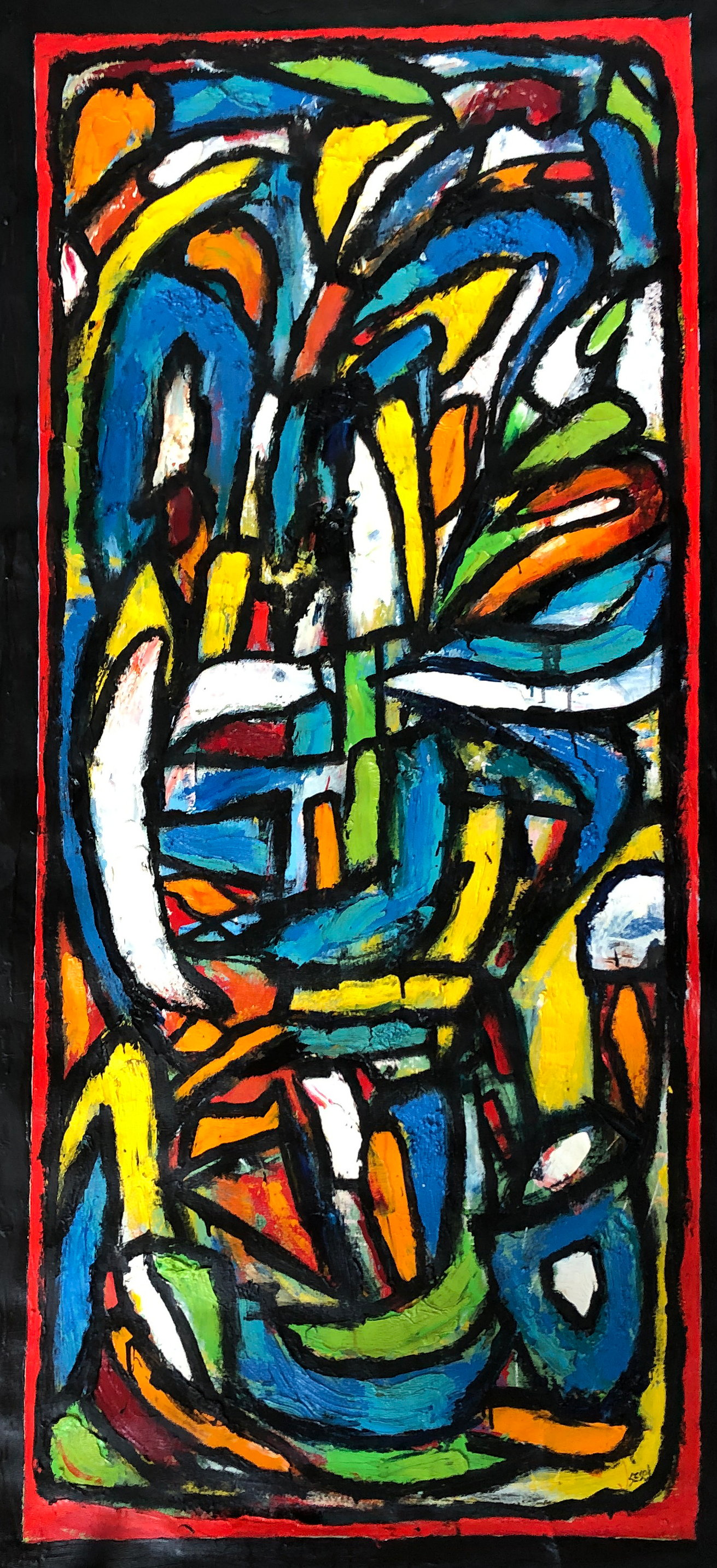 "Cohesion" oil/on unstretched canvas 28" x 64" additional 2"+ black border shown email sesow@sesow.com to reserve/purchase. |