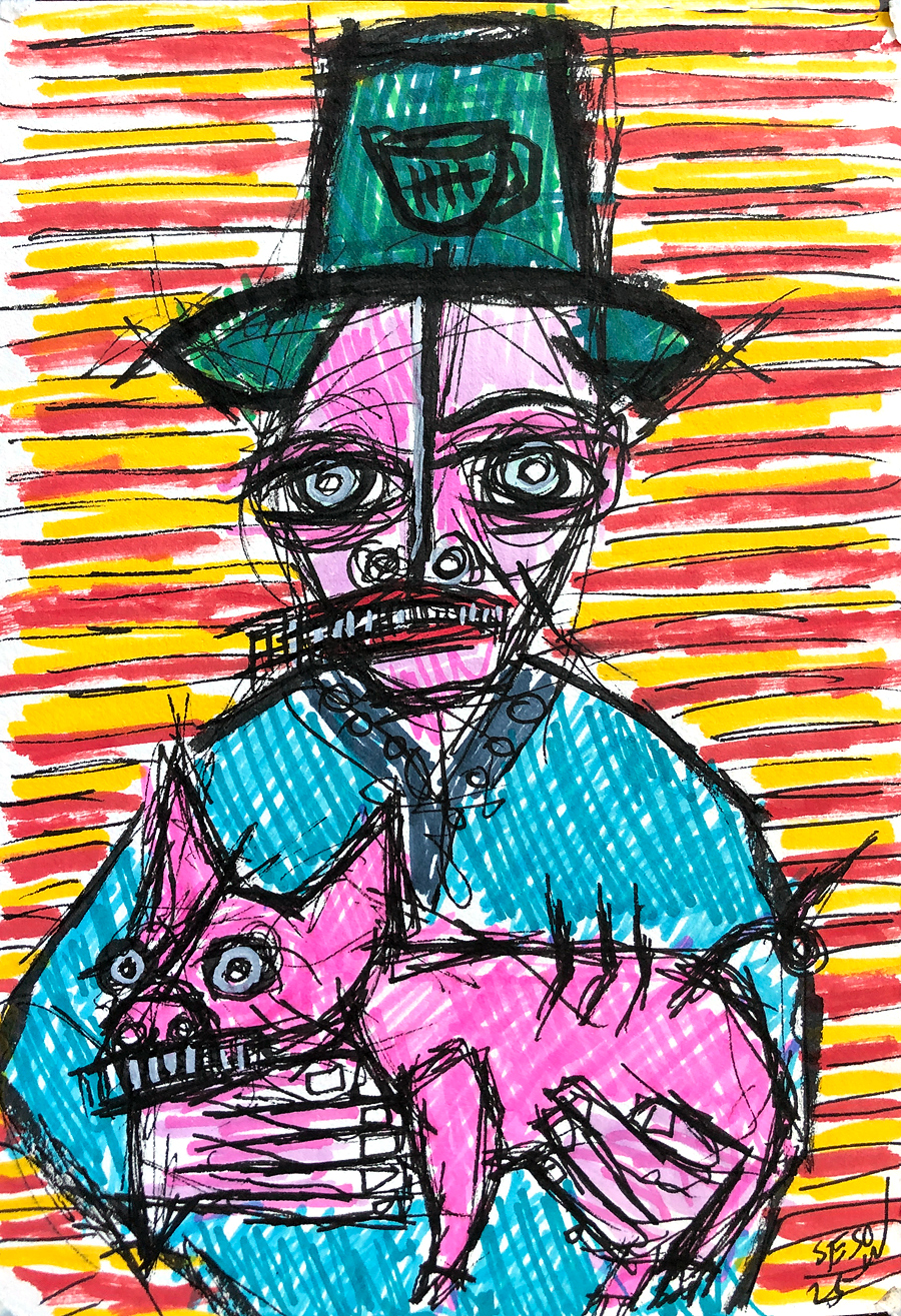 "Scientist" acrylic/ink/graphite on watercolor paper 18" x 12" *SOLD email sesow@sesow.com to reserve/purchase. |