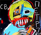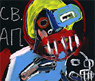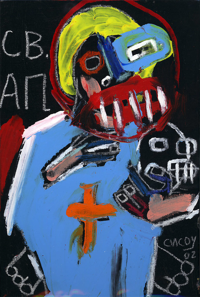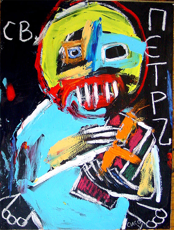 "Saint Al", 2002 completed in Sofia, Bulgaria while in the 'GeekCorps' approx. 8"x 12" acrylic/mixed on canvas board (art supplies acquired in bulgaria) $180 |