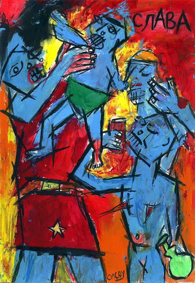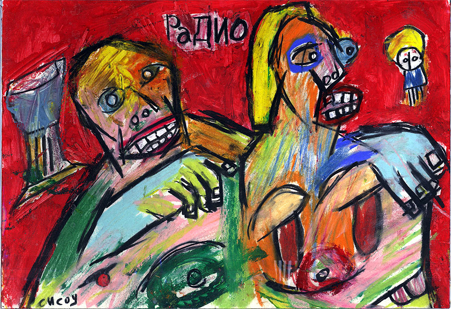 "cyrillic Sesow", 2002 completed in Sofia, Bulgaria while in the 'GeekCorps' 10.75" x 7" acrylic/mixed on paper (paint acquired in bulgaria) *SOLD |