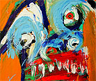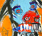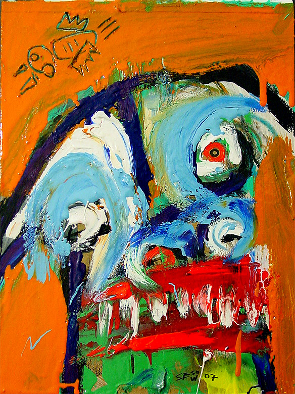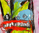 "Split Personality" 48" x 24" acrylic, oil stick, crayon on DC street banner *SOLD |