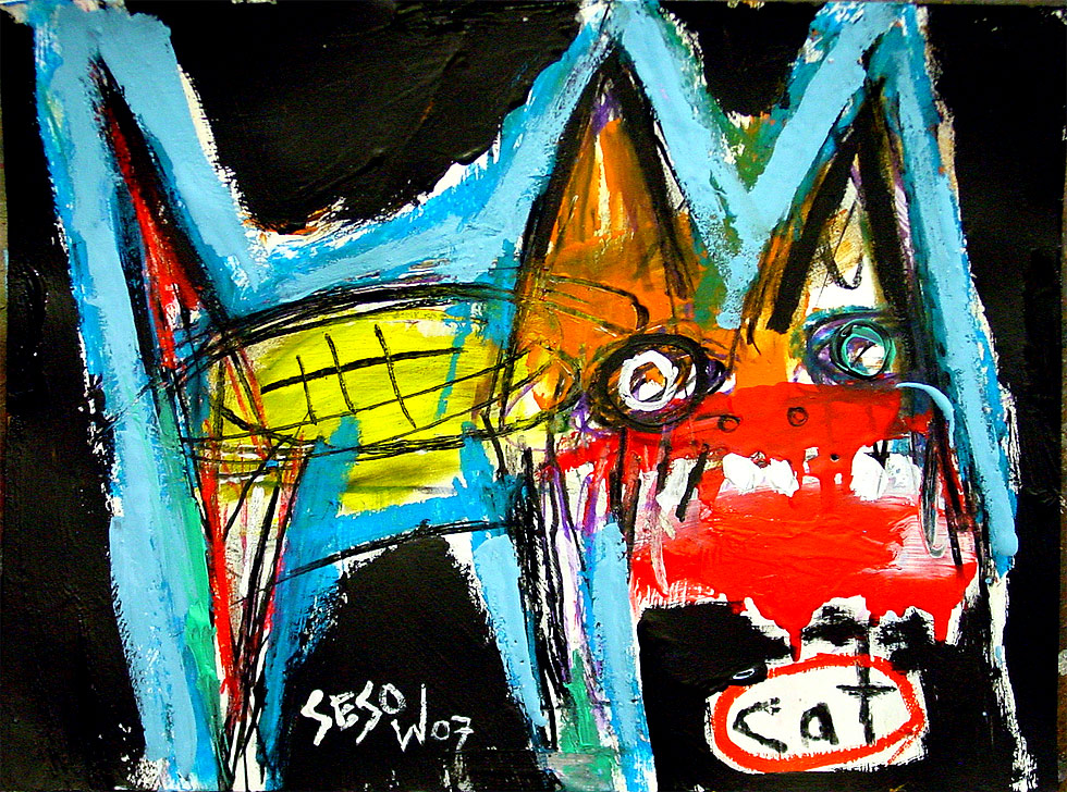 "Love Cat" 9" x 12" acrylic,oil on bristol paper *SOLD |