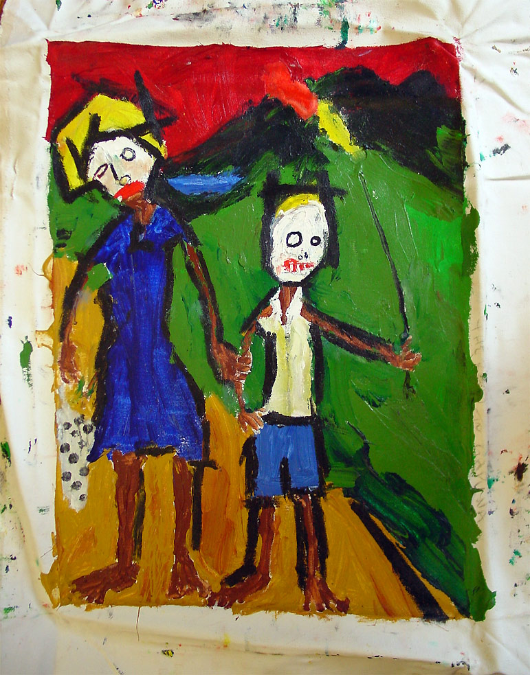 "The Road to Gapuna" (completed at Santa Ana, Solomon Islands 1999) last painting done by while in the Peace Corps 27" x 18.5" acrylic on non-stretched canvas *SOLD |