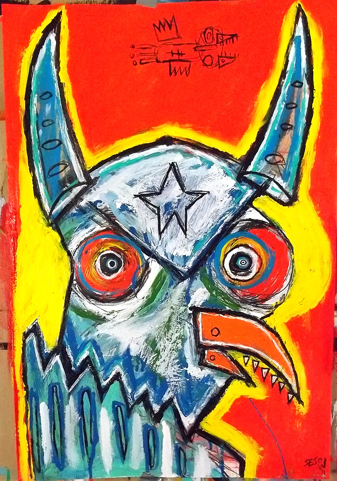 "Owl head" acrylic/mix on paper 22" x 15" currently represented at Gallery Artevistas in Barcelona, Spain they ship internationally, contact them here |
