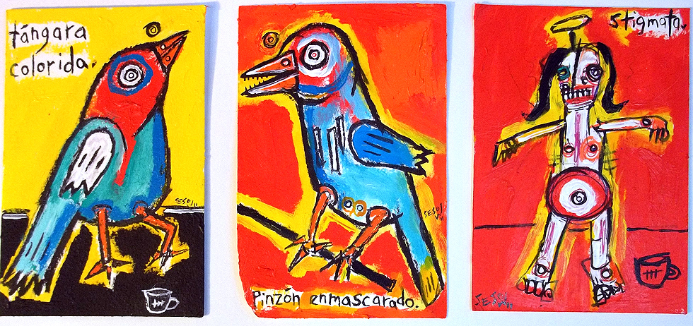 small october 2011 original paintings acrylic/mix on paper or matboard approx 4" x 6" currently represented at Gallery Artevistas in Barcelona, Spain they ship internationally, contact them here |