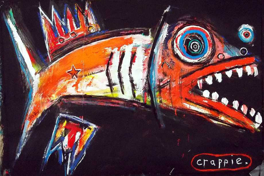 "crappie" acrylic/mix on archival watercolor paper 22" x 15" currently represented at Gallery Artevistas in Barcelona, Spain they ship internationally, contact them here |
