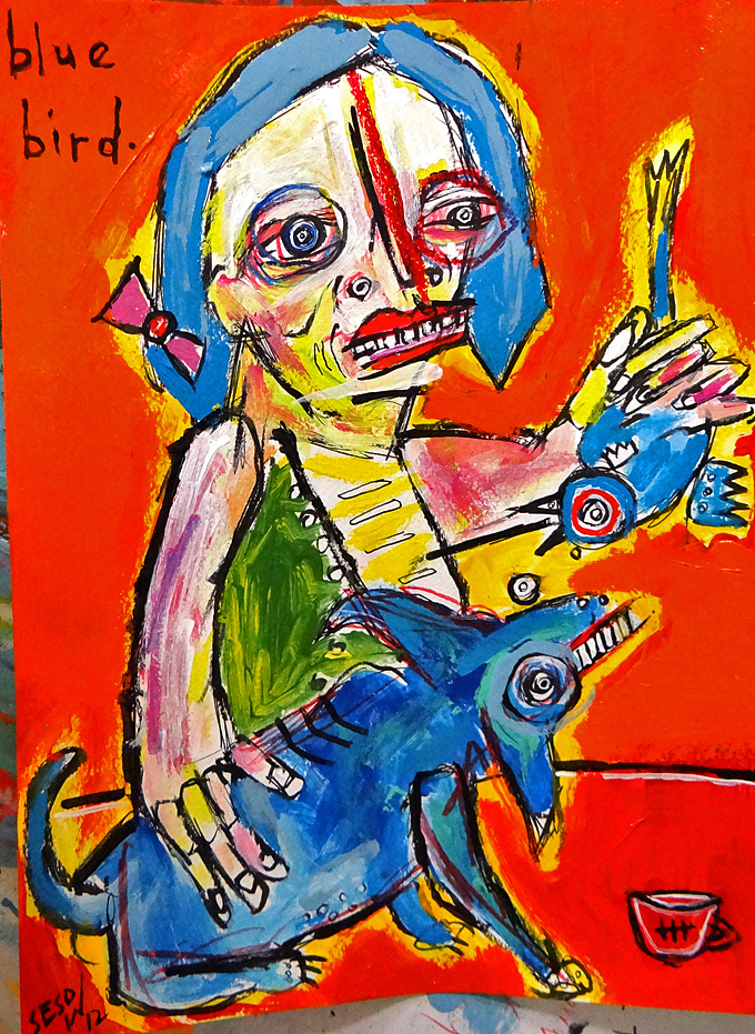 "Blue Bird" mix on watercolor paper 9.5" x 11.5" *SOLD email sesow@sesow.com to reserve/ask about purchasing. please include url and description. |