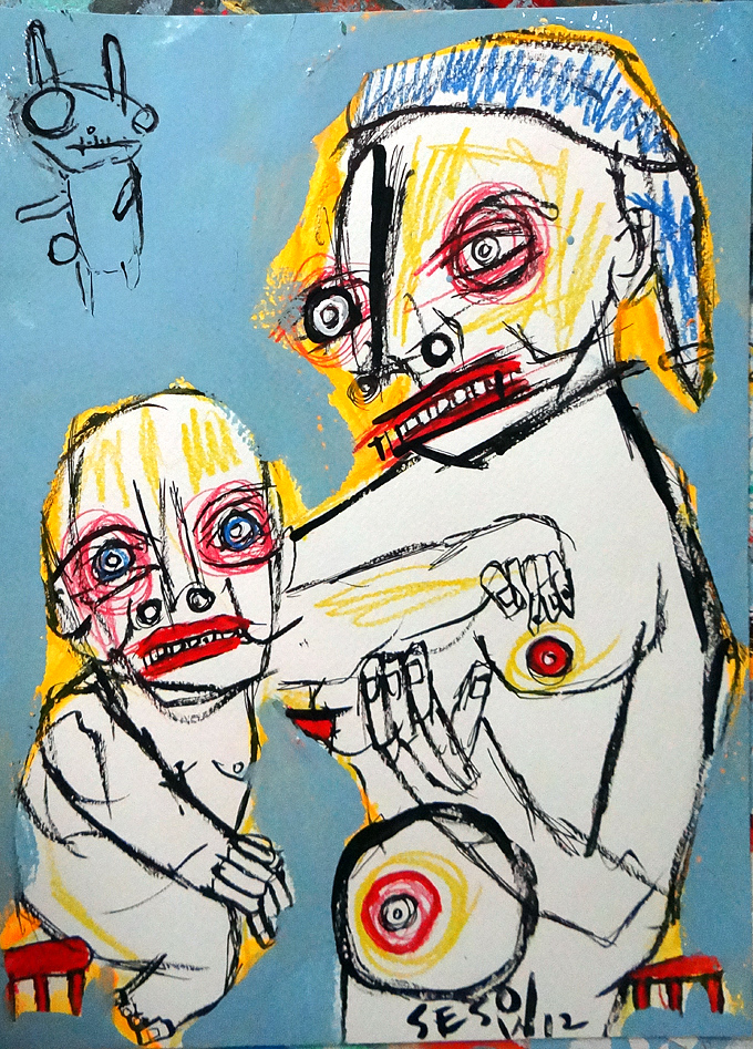 "Woman with Child" mix on watercolor paper 9.5" x 11.5" *SOLD email sesow@sesow.com to reserve/ask about purchasing. please include url and description. |