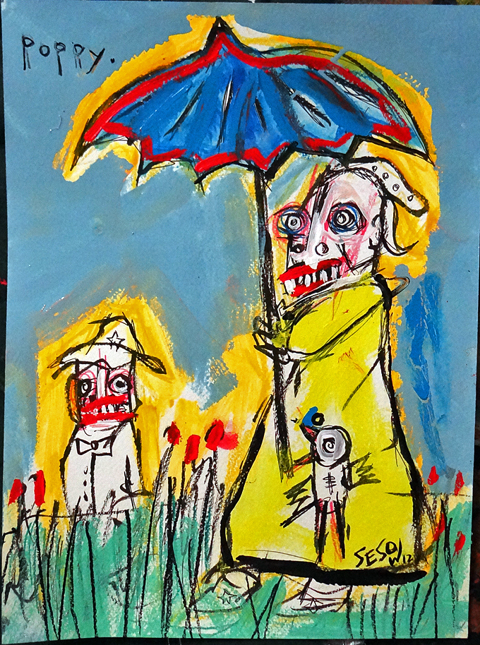 "Lady in Poppy Field" mix on watercolor paper 9.5" x 11.5" $80 email sesow@sesow.com to reserve/ask about purchasing. please include url and description. |
