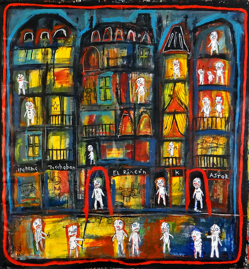 "In the Neighborhood" oil/acrylic on unstretched canvas approx. 36" x 38" *SOLD email sesow@sesow.com to reserve/ask about purchasing. please include url and description. |