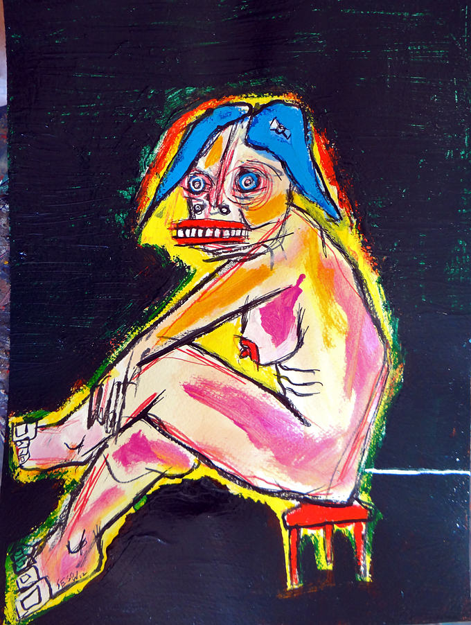 "Seated Nude on Studio Stool" mix on watercolor paper 9.5" x 11.5" $80 email sesow@sesow.com to reserve/ask about purchasing. please include url and description. |