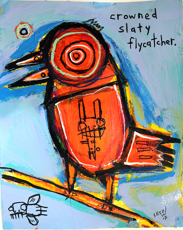 "Crowned Slaty Flycatcher" acrylic on archival paper 8"x10" $70 email sesow@sesow.com to reserve/ask about purchasing. please include url and description. |