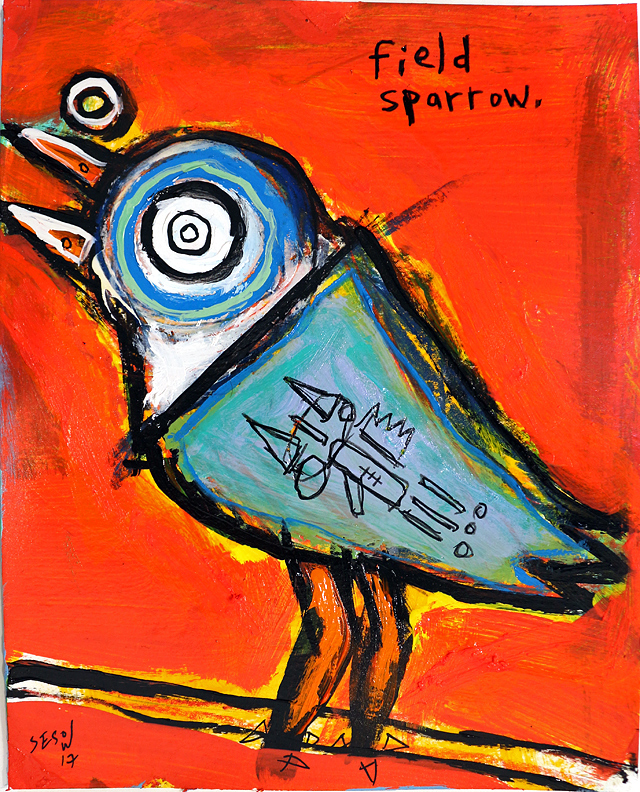 "Field Sparrow" acrylic on archival paper 8"x10" $70 email sesow@sesow.com to reserve/ask about purchasing. please include url and description. |