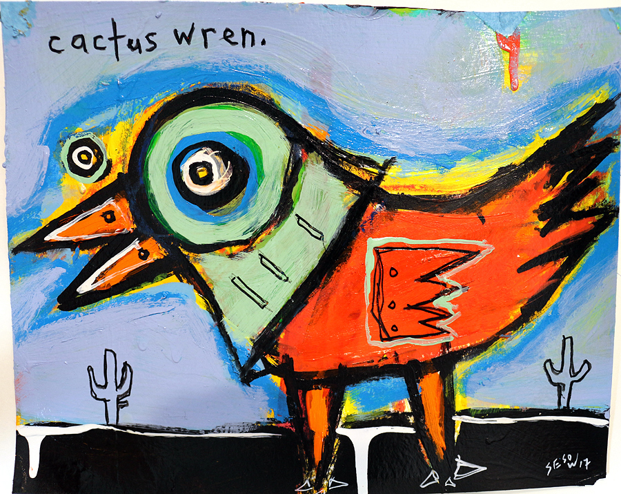 Cactus Wren" acrylic on archival paper 8"x10" $70 email sesow@sesow.com to reserve/ask about purchasing. please include url and description. |