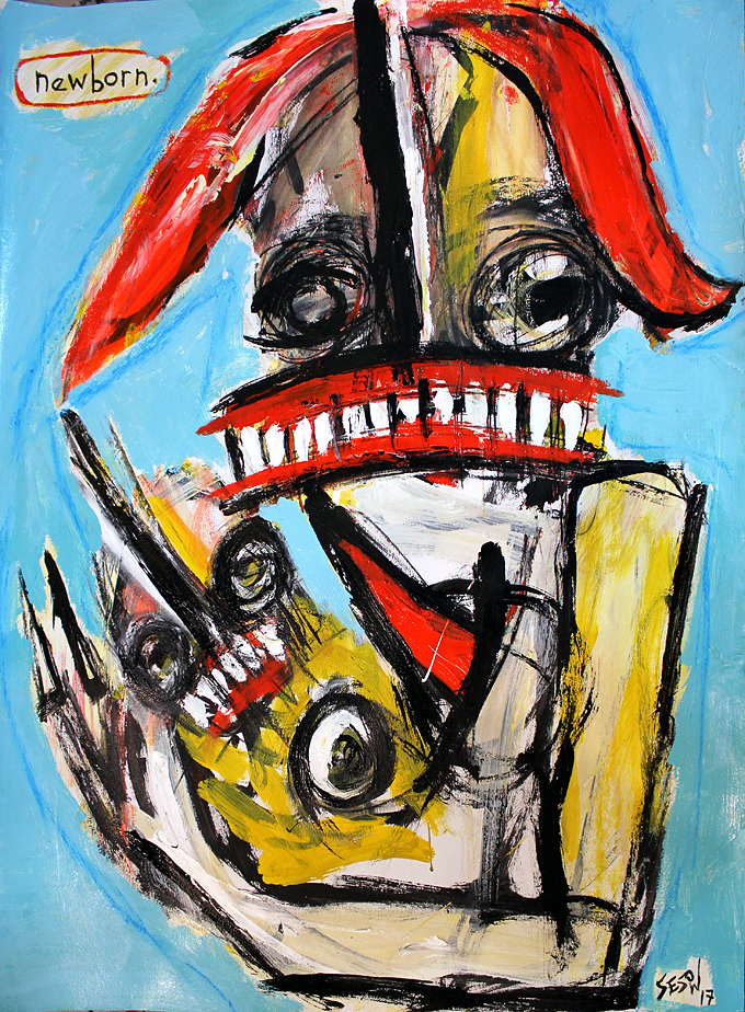 "Brand-New Newborn" acrylic.oil on archival watercolor paper 30.5" x 22.5" *SOLD email sesow@sesow.com to reserve/ask about purchasing. please include url and description. |