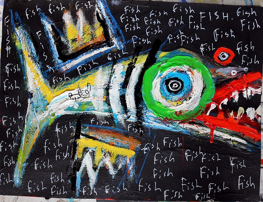 "Bigger Fish to Fry" acrylic/oil on paper approx. 13" x 10" *SOLD email sesow@sesow.com to reserve/ask about purchasing. please include url and description. |