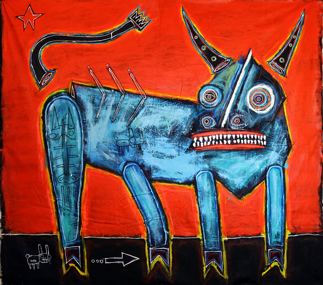 "Follow the leader" acrylic/oil on unstretched canvas approx. 90" x 82" available from Silo118 gallery Santa Barbara, CA email sesow@sesow.com to reserve/ask about purchasing. please include url and description. |