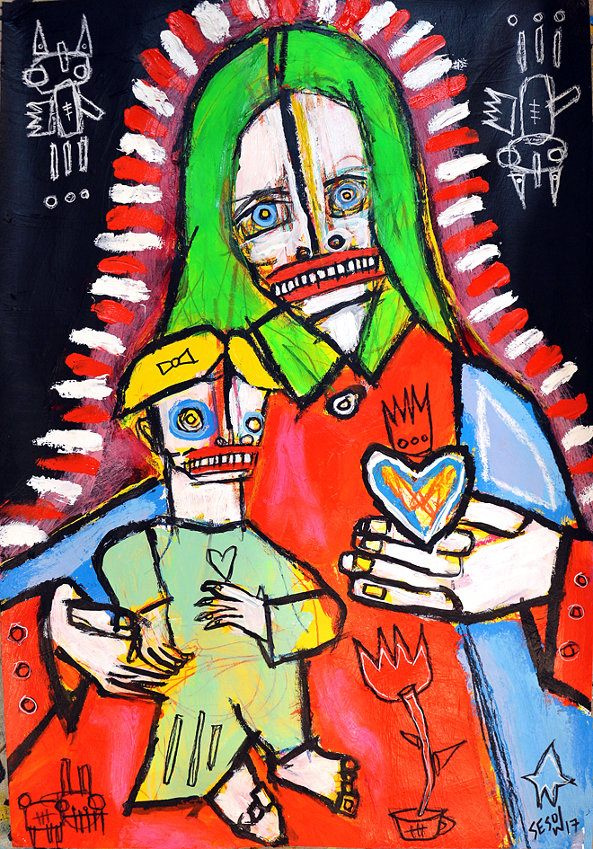 "Mother" acrylic/mix on archival paper 22" x 15" *SOLD email sesow@sesow.com to reserve/ask about purchasing. please include url and description. |