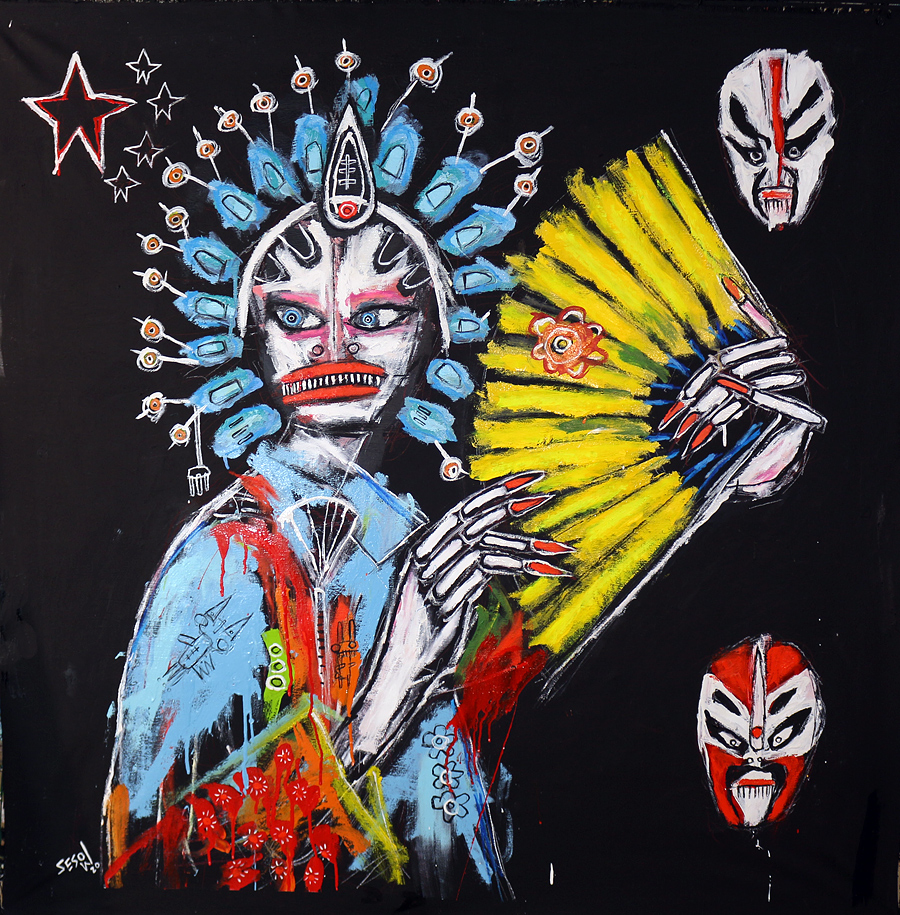 "Tradition" oil/mix on unstretched canvas 45" x 45" (with an extra few inches black border on the sides) *SOLD email sesow@sesow.com to reserve/ask about purchasing. please include url and description. |