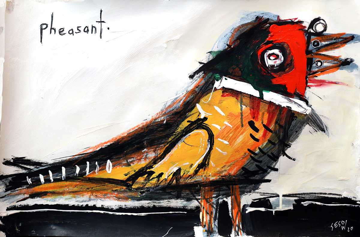 "Pheasant" acrylic/mix on paper 12" x 18" *SOLD email sesow@sesow.com to reserve/ask about purchasing. please include url and description. |