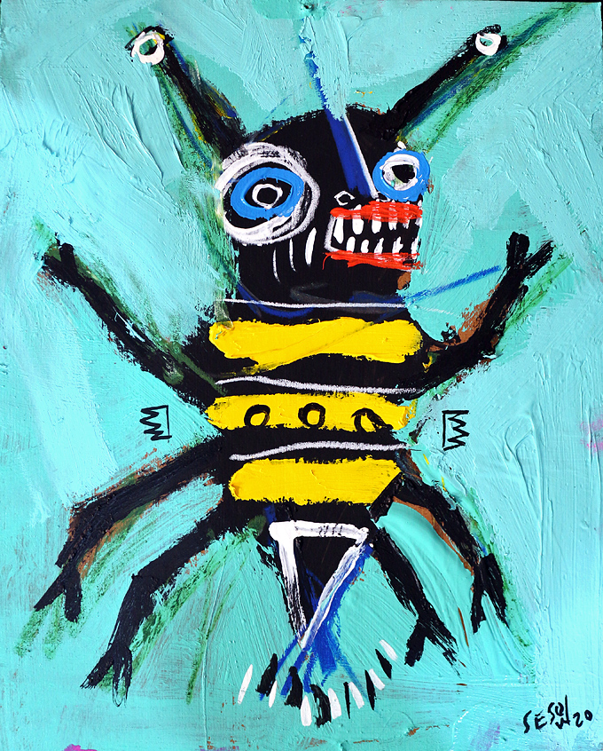 "Bee" acrylic/mix on paper 8" x 10" *SOLD email sesow@sesow.com to reserve/ask about purchasing. please include url and description. |