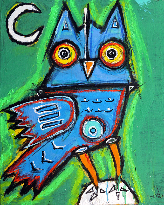 "Blue Owl acrylic/oil on stretched canvas 16" x 20" *SOLD email sesow@sesow.com to reserve/ask about purchasing. please include url and description. |