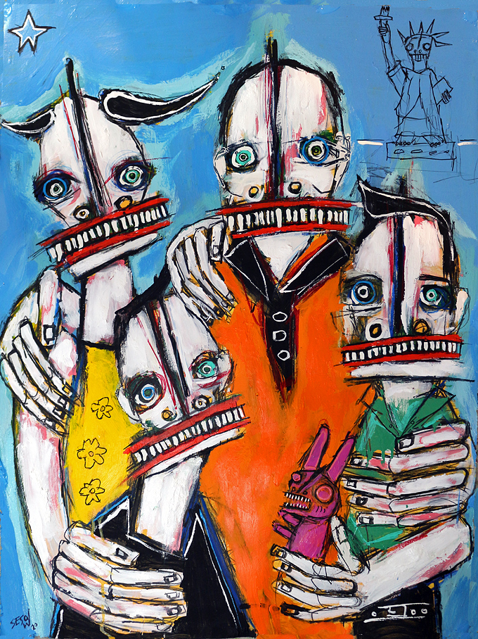 "Family" acrylic/oil on watercolor paper 30" x 22" *SOLD email sesow@sesow.com to reserve/ask about purchasing. please include url and description. |