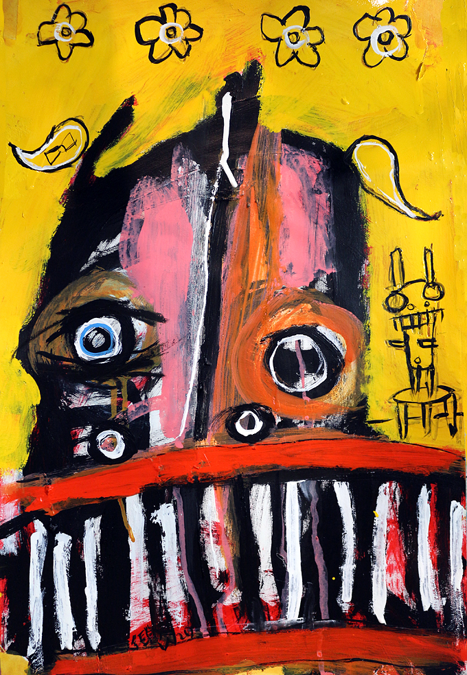 "Trauma, with cup" acrylic/mix on paper 12" x 18" *SOLD email sesow@sesow.com to reserve/ask about purchasing. please include url and description. |