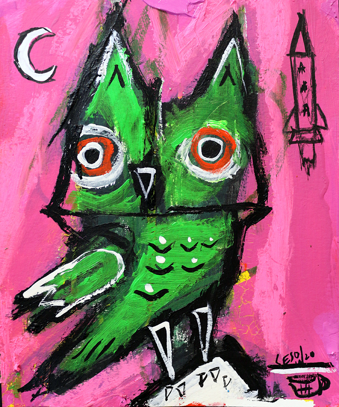 "Owl" acrylic/oil on watercolor paper 30" x 22" *SOLD email sesow@sesow.com to reserve/ask about purchasing. please include url and description. |