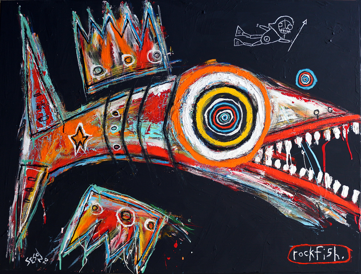 "Rockfish" acrylic/oil on stretched canvas 30" x 40" *SOLD email sesow@sesow.com to reserve/ask about purchasing. please include url and description. |