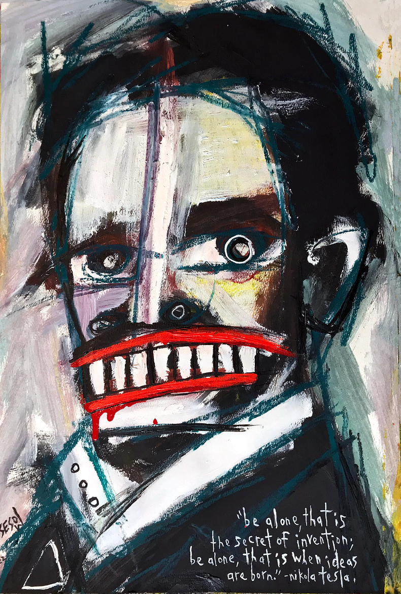 ![]() "Tesla (on being alone)" acrylic/mix on watercolor paper 12" x 18" *SOLD email sesow@sesow.com to reserve/ask about purchasing. please include url and description. |