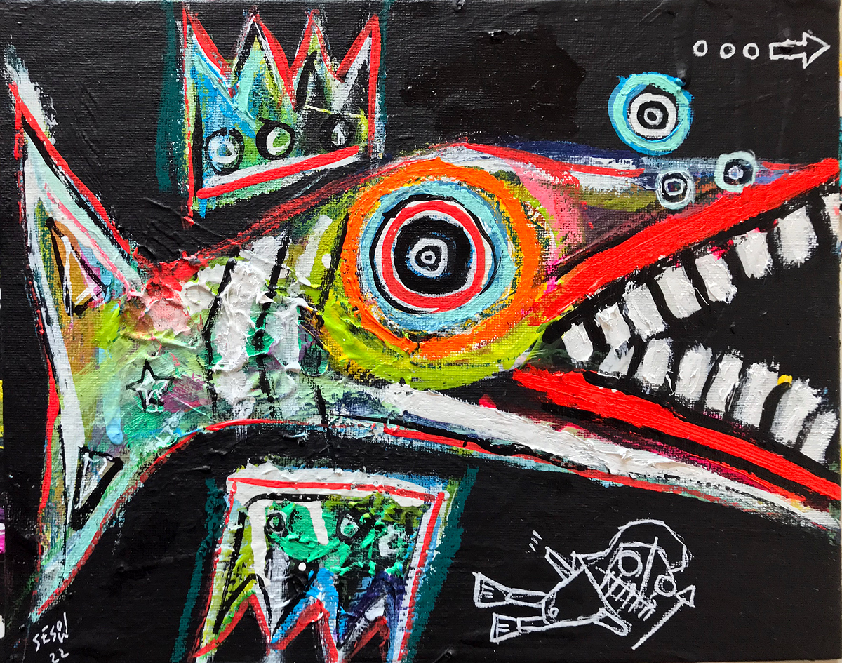 ![]() "Fish (2)" acrylic/mix on canvas board 8" x 10" *SOLD email sesow@sesow.com to reserve/ask about purchasing. please include url and description. |
