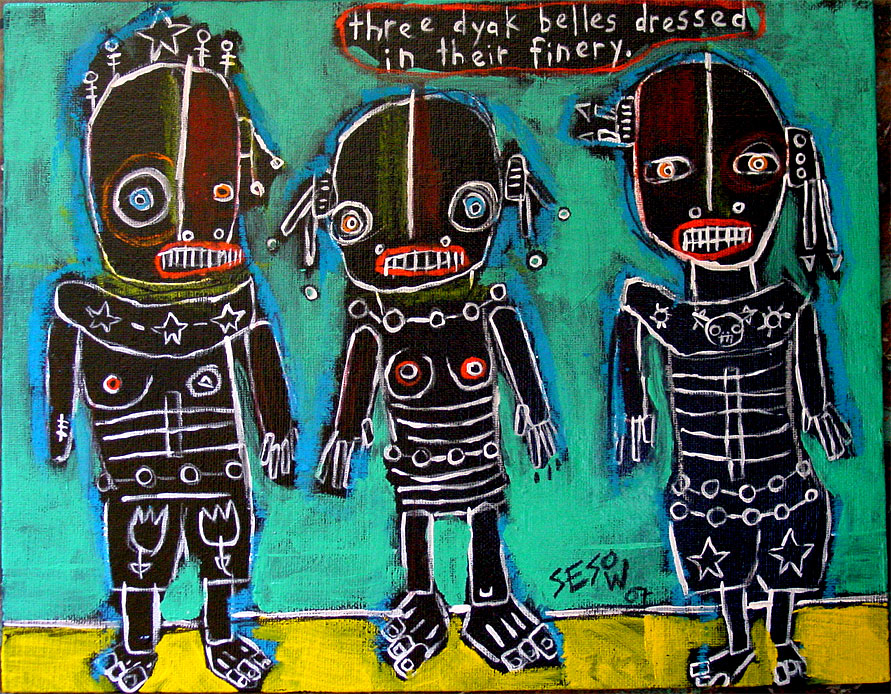 "Three Dyak Belles Dressed in their Finery" 11" x 14" acrylic on canvasboard *SOLD from July, 1911 Natl Geographic (click here for picture) |