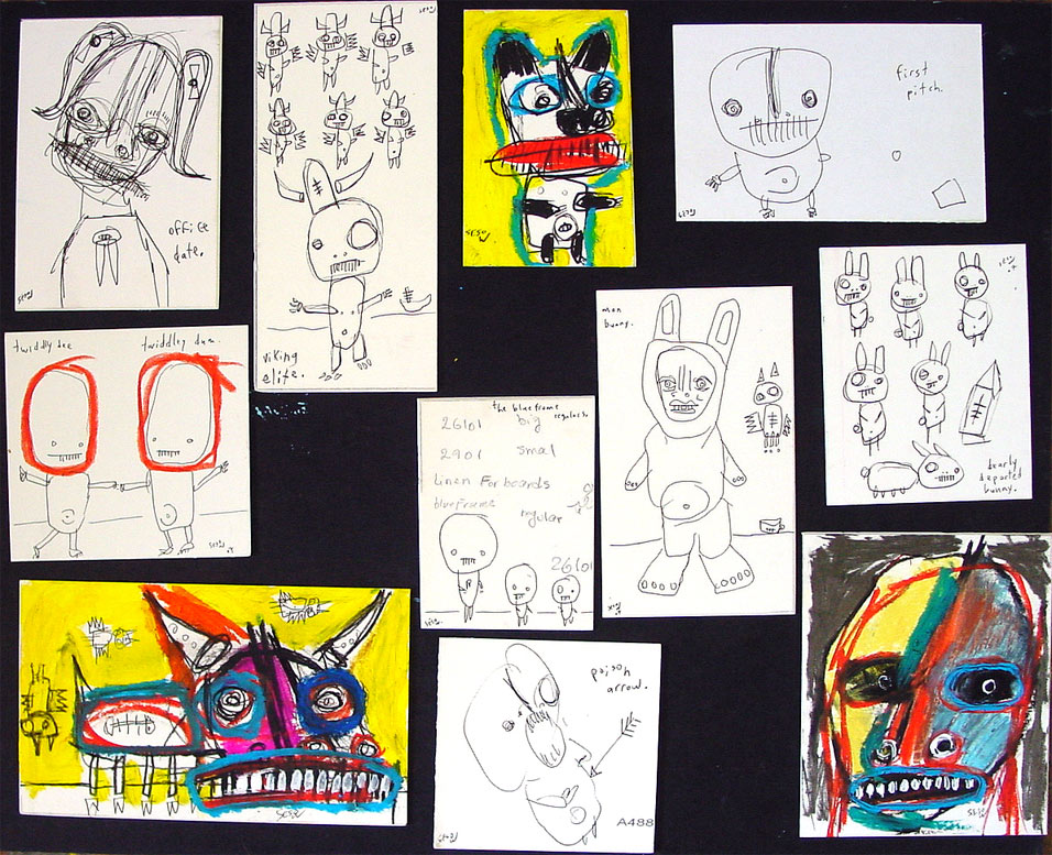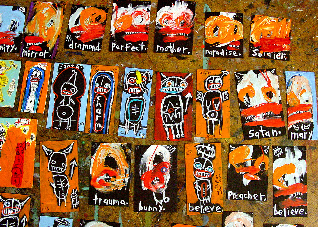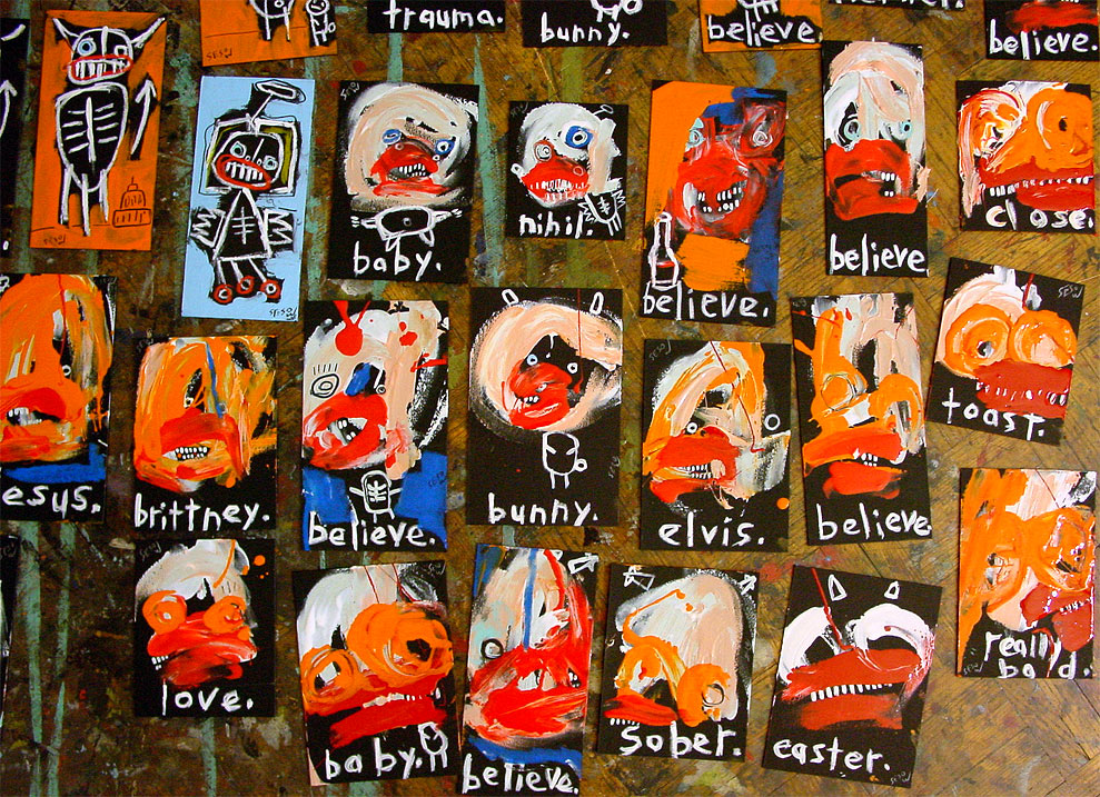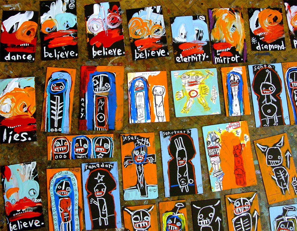 small paintings approx 4"x 6" acrylic/mixed on matboard *SOLD |