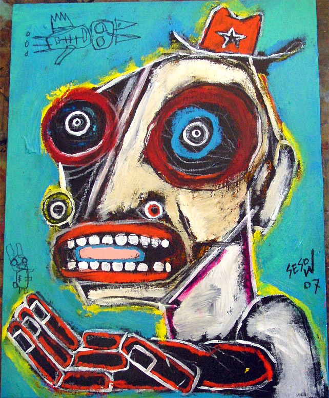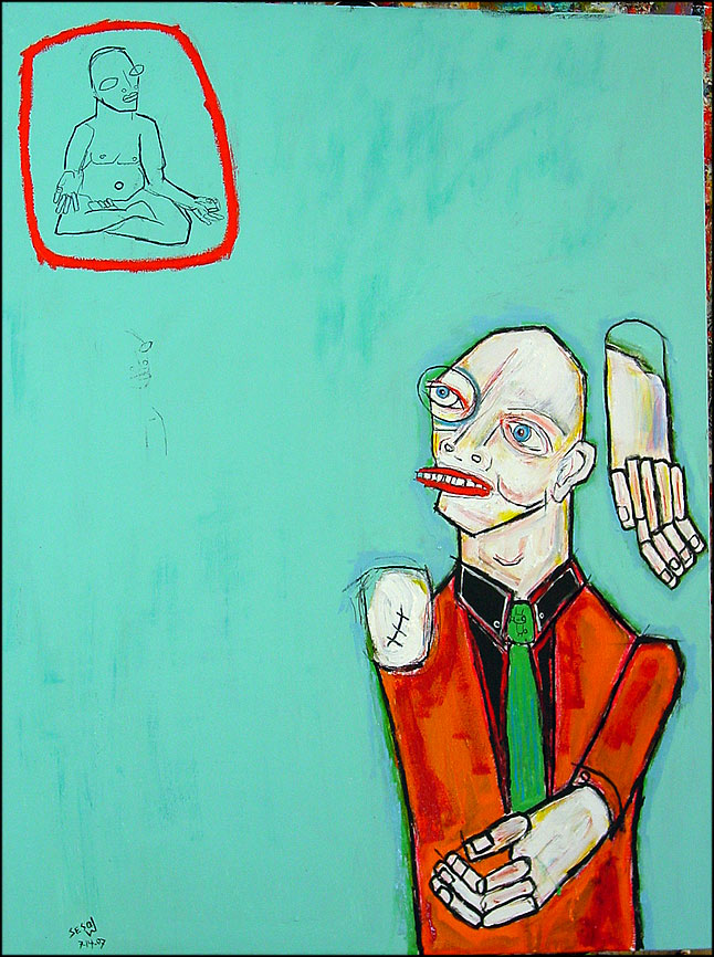 "Guru" 30" x 40" acrylic/mixed on stretched canvas *SOLD "31 Days in July Series" (July 14, 2007) CLICK HERE to for wash. post cover image |