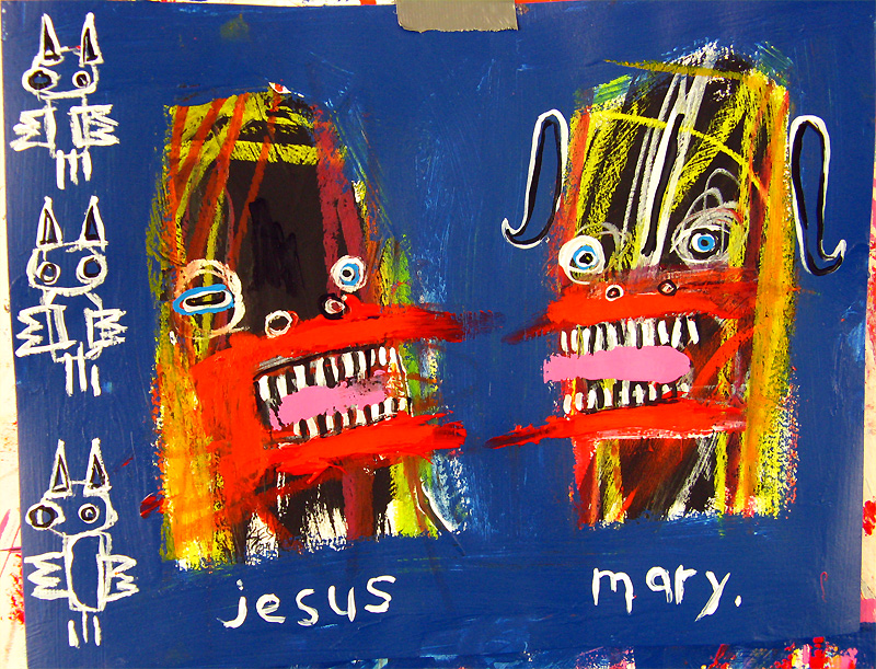 "baby jesus and mary" 8.5" x 28" oil/mix on matboard $80 |
